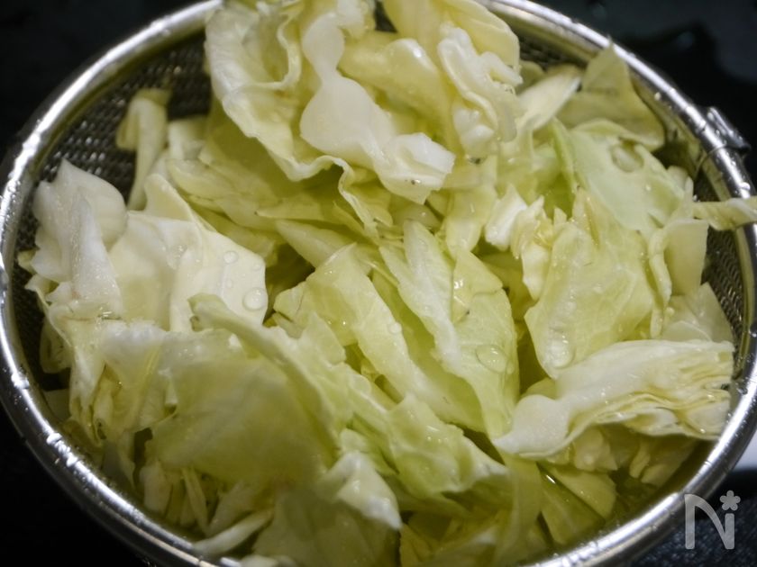 (2) 放置している間に、春キャベツをザク切り。