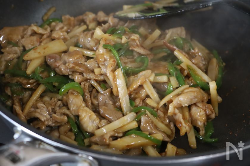 ピーマン、蓮根を加えてからは強火でさっと仕上げてください。
