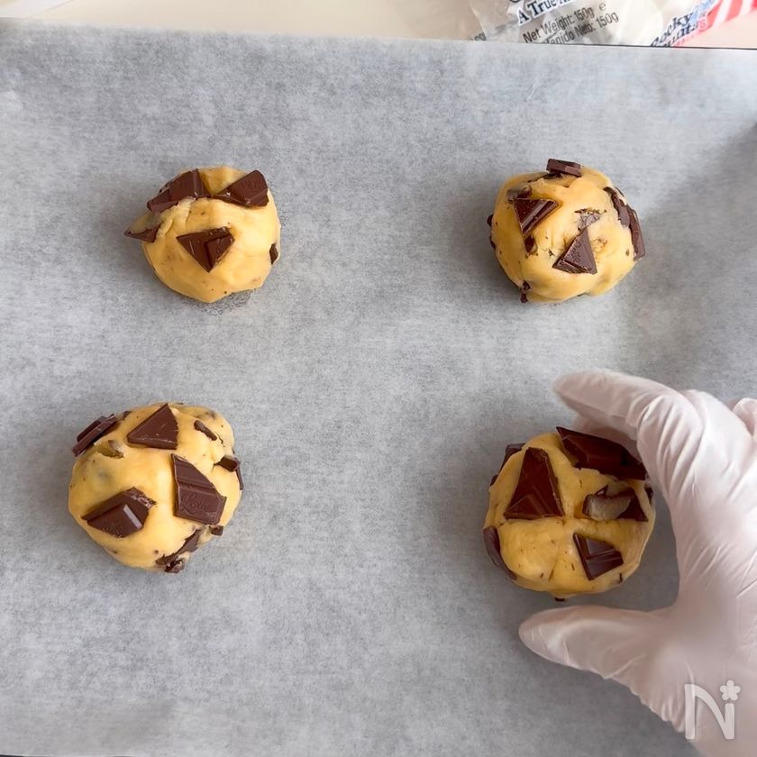 クッキングシートを敷いた天板に離して並べ、予熱した170℃のオーブンで15〜20分焼く。