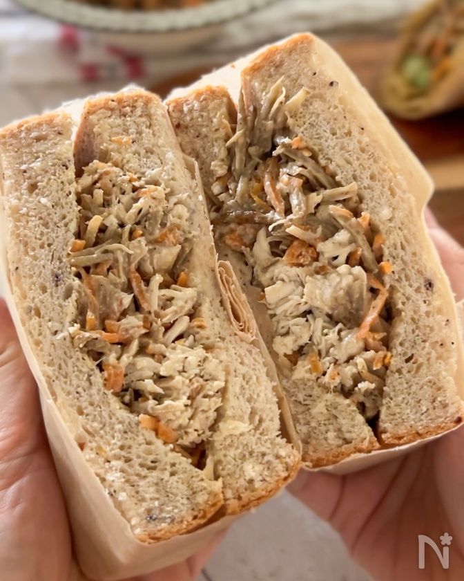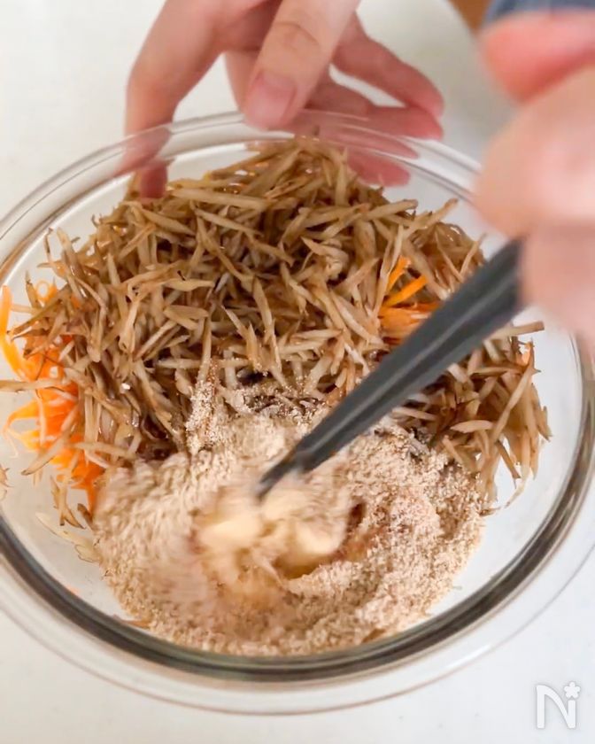 (3) ごぼうと人参が入ったボウルに【A】とささみを加えてよく混ぜたら完成