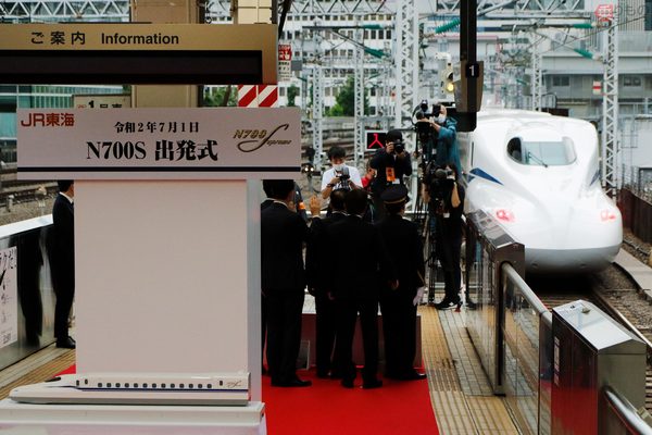東京駅で開催されたN700S出発式(2020年7月1日、恵 知仁撮影)。