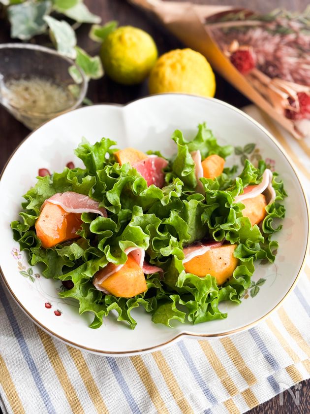 柚子香る!柿と生ハムのレタス巻きサラダ