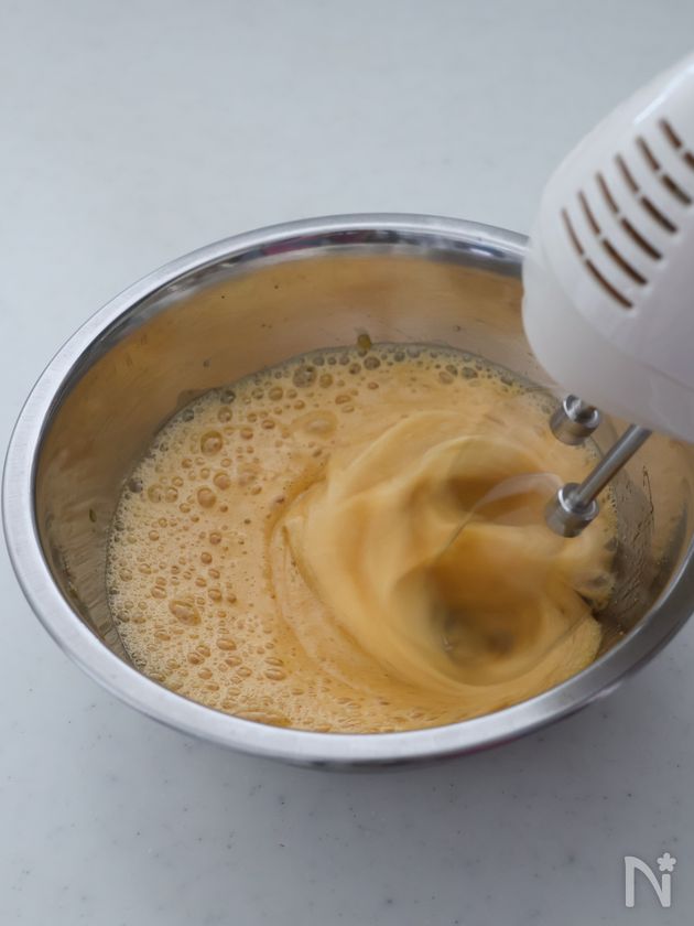 ・泡立て器でも作れますが、1の工程で卵に空気を含ませるようによく混ぜてください。