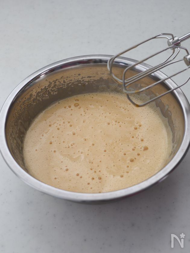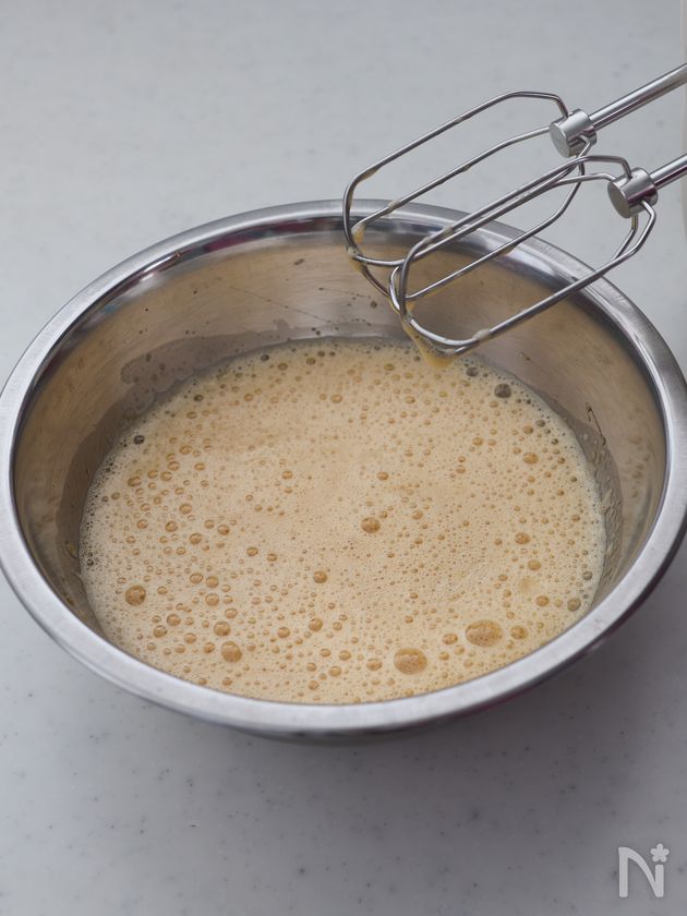 (1) ボウルに【A】を入れ、ハンドミキサーの高速で2分程泡立てる。