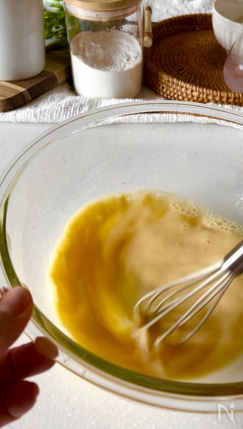 (1) ボウルに【A】を入れて、泡立て器でよく混ぜる。