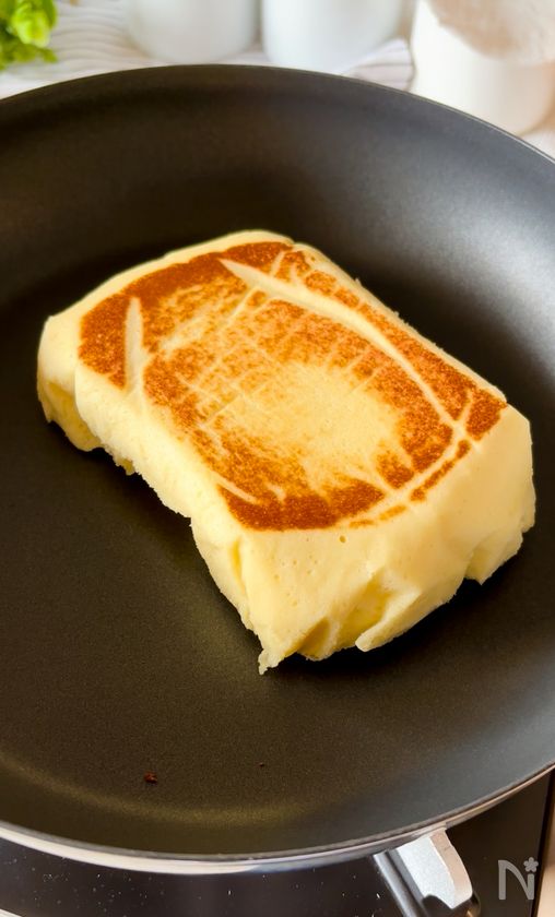 (5) レンジで加熱した状態でも美味しいですが、フライパンに薄く油(分量外)をしいて、蒸しパンの表面にこんがり焼き目をつけると、さらにおいしさがアップします!