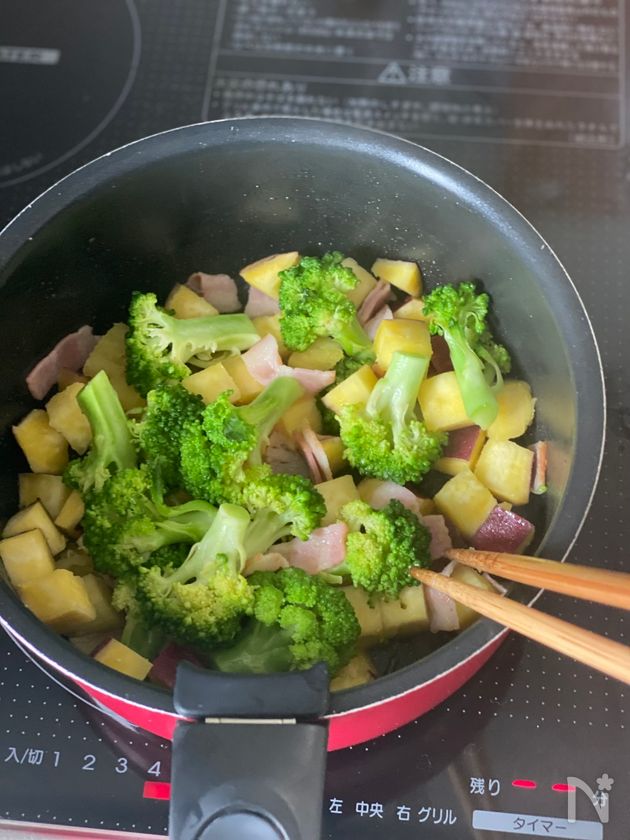 ・さつまいもとブロッコリーは後から煮るので、手順3のレンジ加熱後は6~7割ほど火が通っていれば大丈夫です。