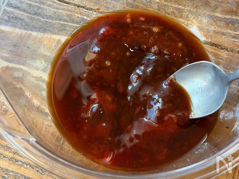 (4) 大きめのボウルに【B】を入れて混ぜ合わせ、ラップはせずに電子レンジ(600W)で1分加熱しておく。