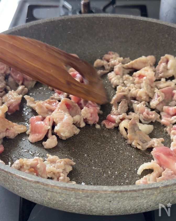 ・豚こま肉は大きさが残るくらいに切ると、歯応えもでて美味しいです。
