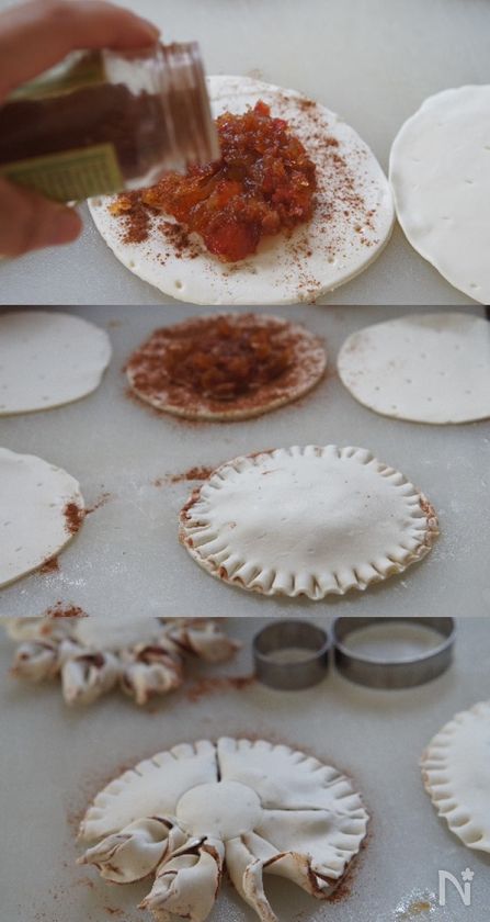 ※市販の冷凍パイシートは厚みが有るので調度良い厚みとなり食感も良くなります。