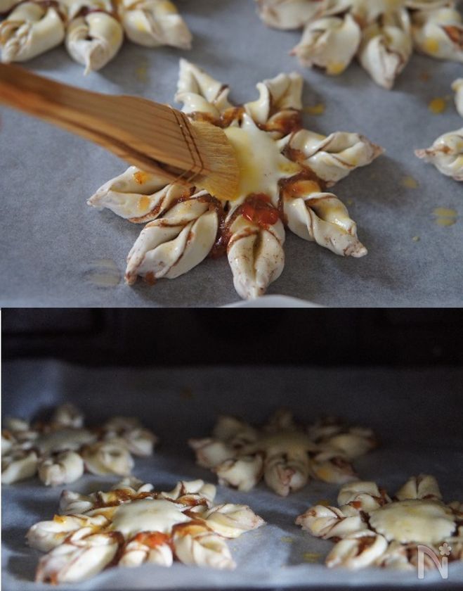 ・ジャムは中央に画像の様に広げて、お好きなジャムに合うようにシナモンやココアを満遍なくふってください。