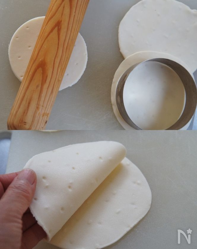 ・イングリッシュマフィン用のセルクルの大きさは径が9cmなので麺棒で12cm以上の長さになるように伸ばすこと。