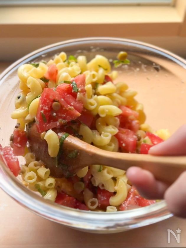 【10分で完成】火を使わない大葉香るトマトマカロニサラダ