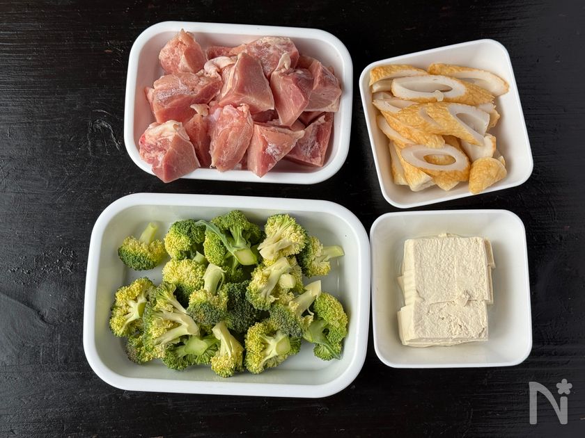 鶏もも肉と豆腐は片栗粉をまぶしてから焼いてください。冷めても硬くならずに美味しく仕上がります。