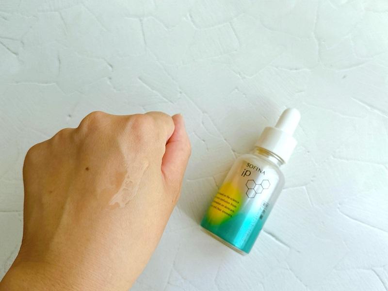 とろみ感がありますが、肌にすっとなじみやすいさらっとしたテクスチャー。塗布していくと、するすると伸びます。うるおいを感じるもののベタつかず使いやすい塗り心地です。