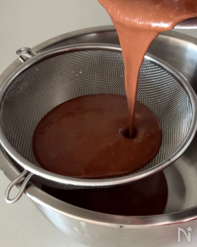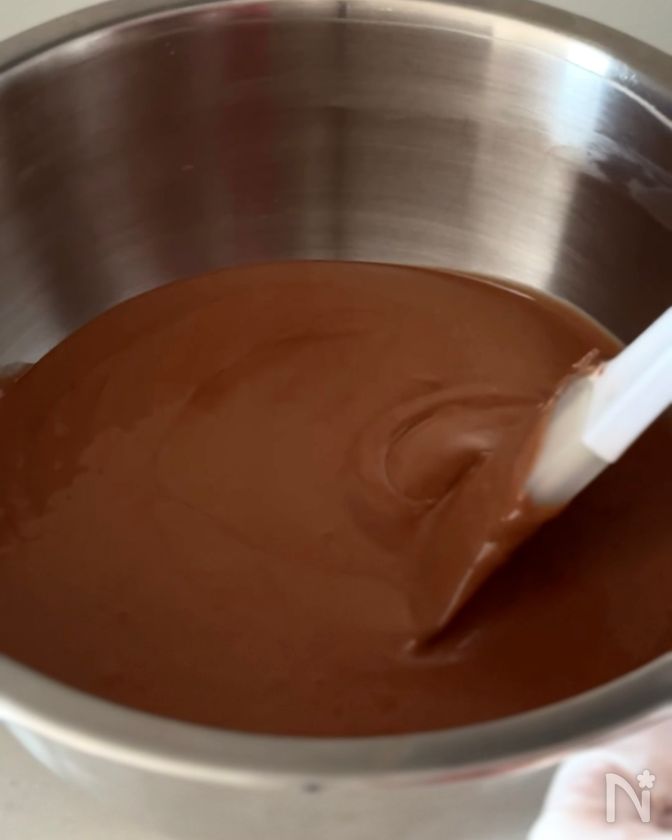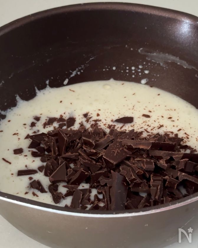 (4) 刻んでおいたチョコレートを加えて、混ぜ合わせる。