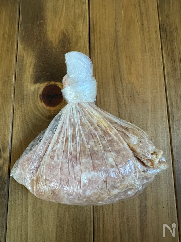 (1) ポリ袋に鶏ひき肉と【A】を加え、しっかり混ぜる。