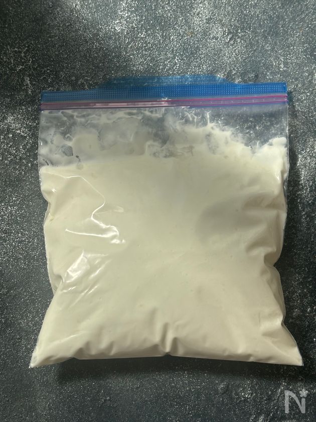 (3) フリーザーバックに入れて空気を抜き袋を閉じる。冷凍庫に入れて1時間冷やす。一旦取り出して袋の上からよく揉んで、さらに冷凍庫で2〜3時間冷やし固める。