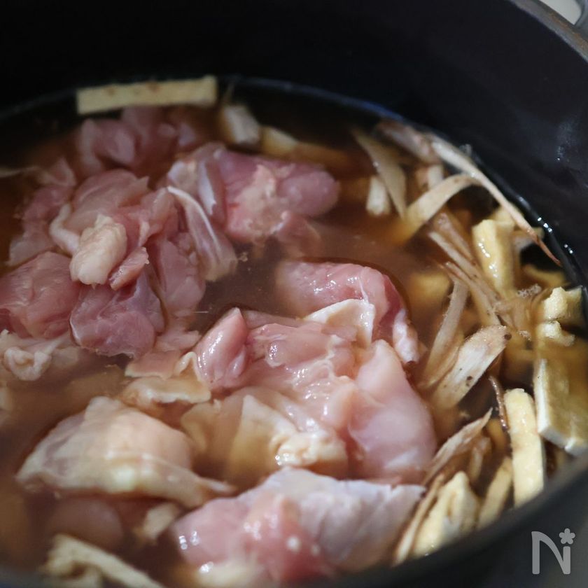お鍋で作る場合は計量カップに水と調味料を600〜640mlになるように混ぜ合わせてください。