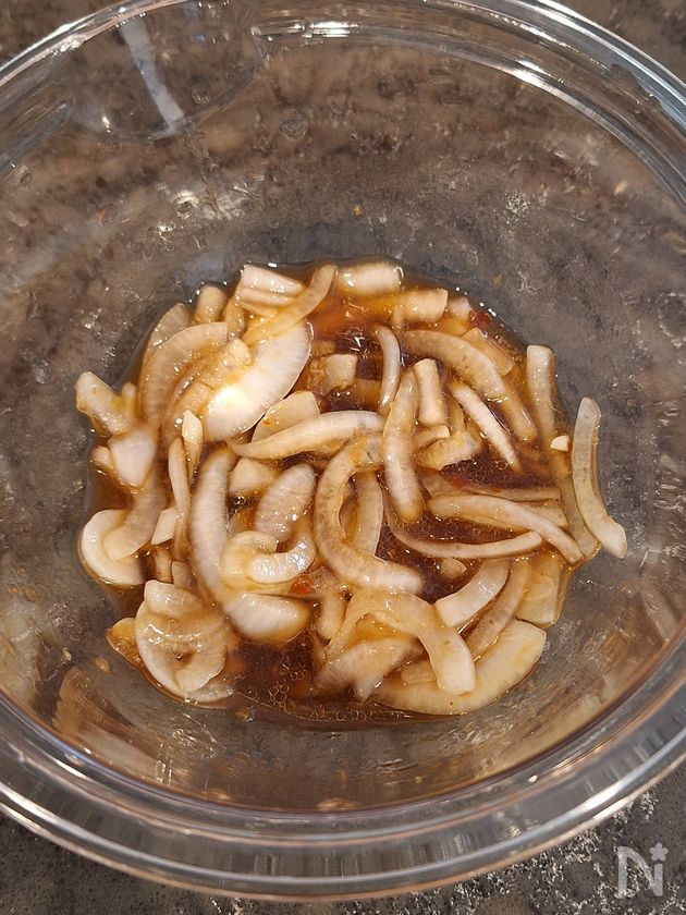 (1) 新たまねぎは薄切りにして塩をもみこむ。