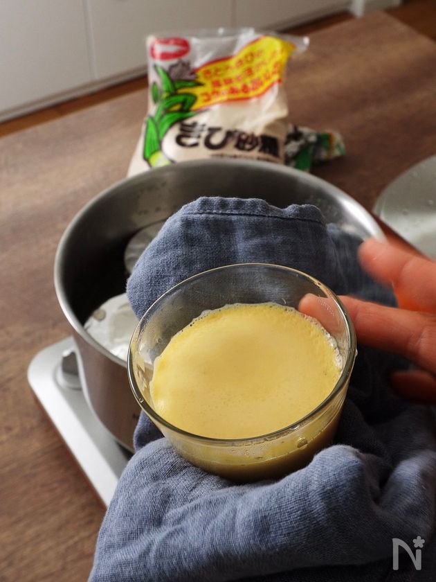 ・プリンを入れた後は湯をぐつぐつさせないでください。「す」が入りますが、やりずぎると入り過ぎるので注意してください。