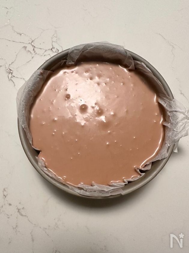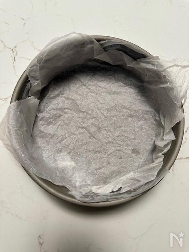 ・クッキングシートを大き目に切って水で濡らしてぎゅっと絞り、型にしいておく。