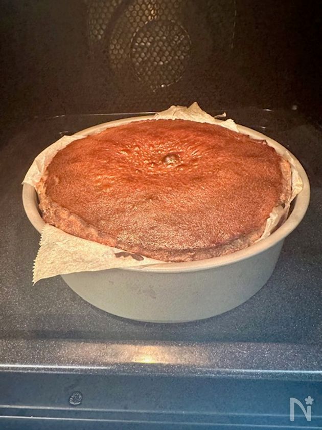 (6) 空気抜きをして、200℃に予熱したオーブンで40分ほど焼く。