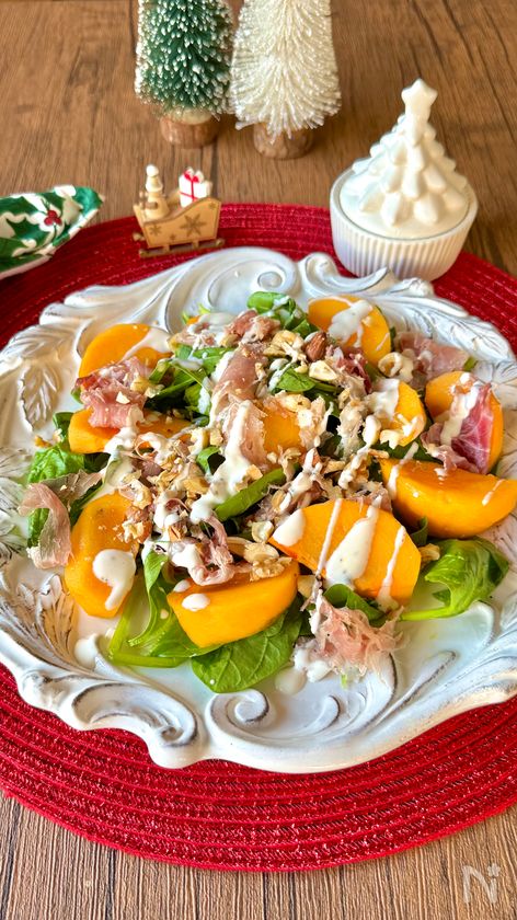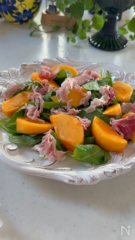 クリスマスにもおすすめ!生ハムと柿とサラダほうれん草のサラダ