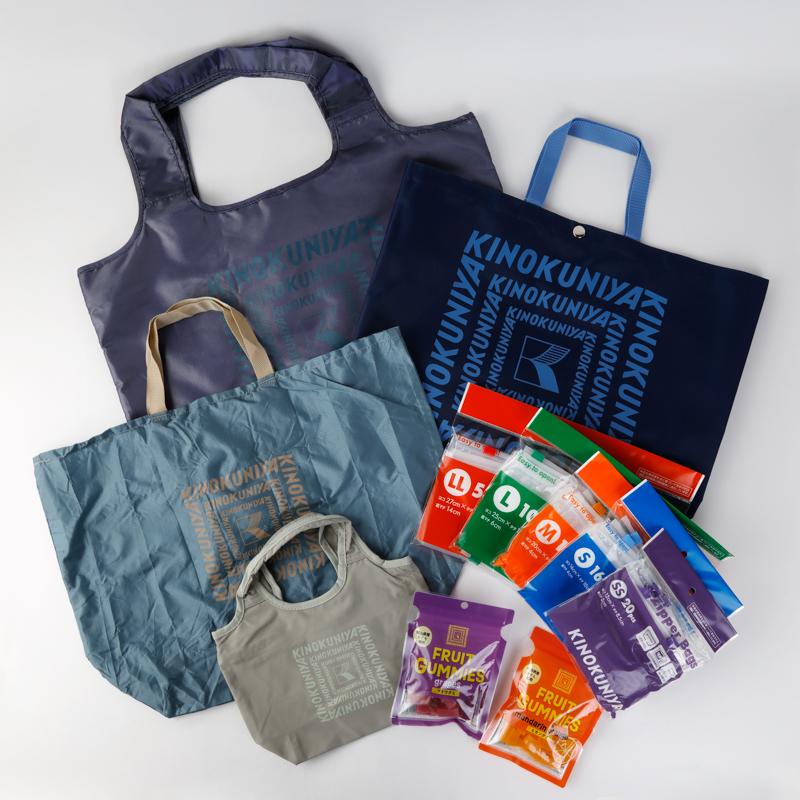 お買い物やお出かけに便利なバッグと、フルーツグミを詰め合わせたお得なセットです。「まとまる保冷バッグ」や「ニューポケッタブルバッグ」「カラーエコロジーバッグ」など、さまざまなシーンで活躍するアイテムが勢ぞろい。落ち着いたブルーのカラーリングもポイントです。