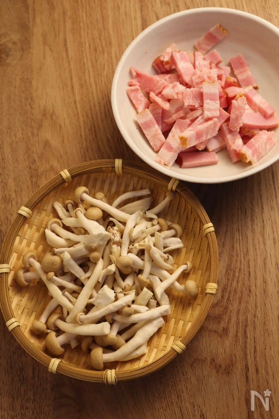 (下準備) ・ベーコンは3〜4cm幅にカット。