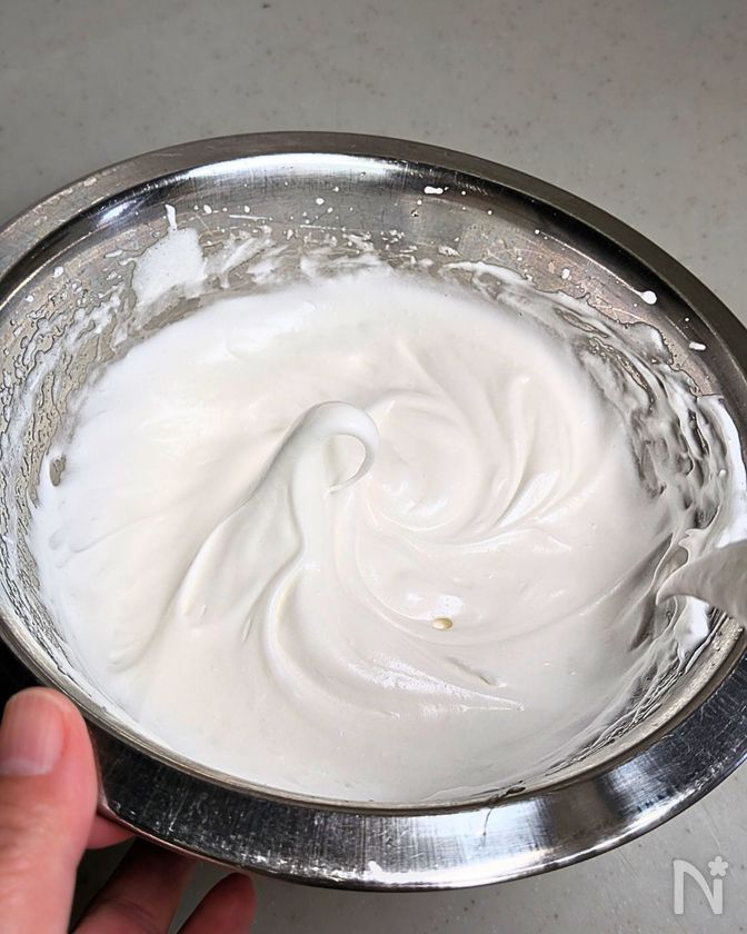 艶があり角がおじぎをするくらいまで泡立てましょう。