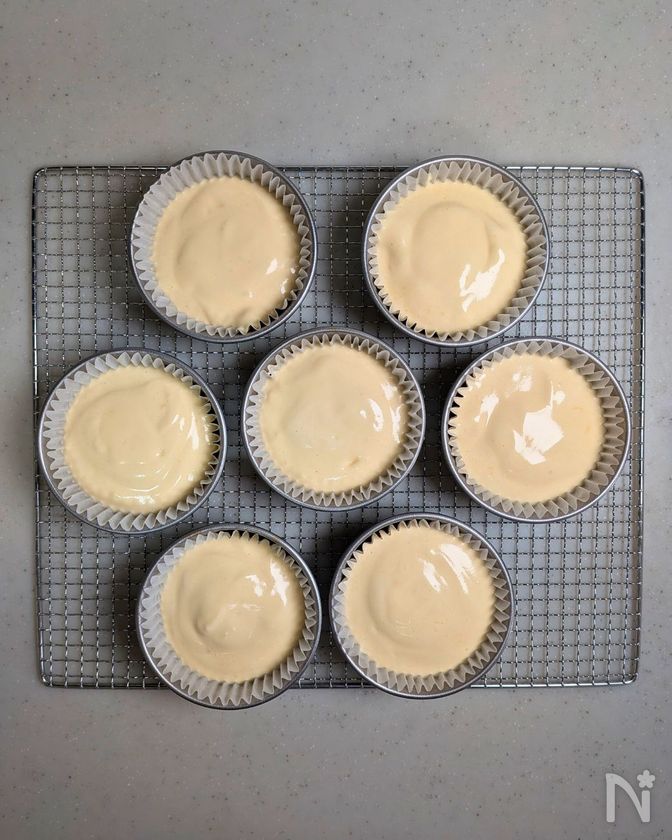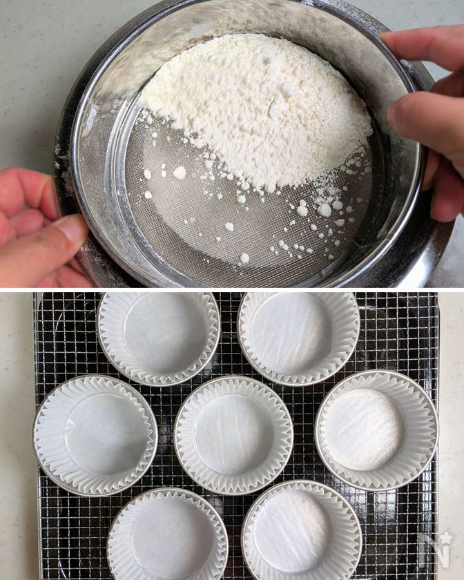 ・グラシンケースをマフィン型(またはフプリンカップ)に敷く。