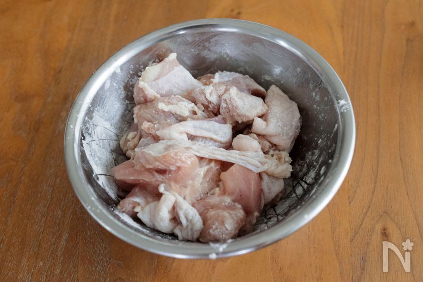 鶏もも肉は一口大に切り、【A】をもみ込んで片栗粉をまぶす。