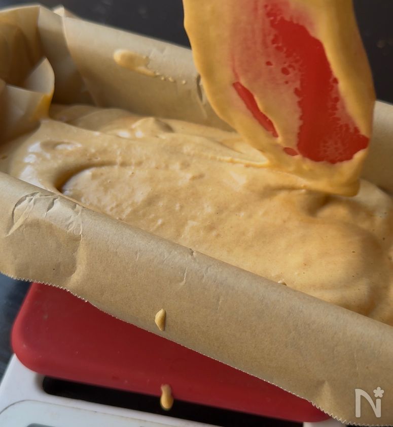 バットに60度のお湯を張り、型をいれ150度45分焼く。