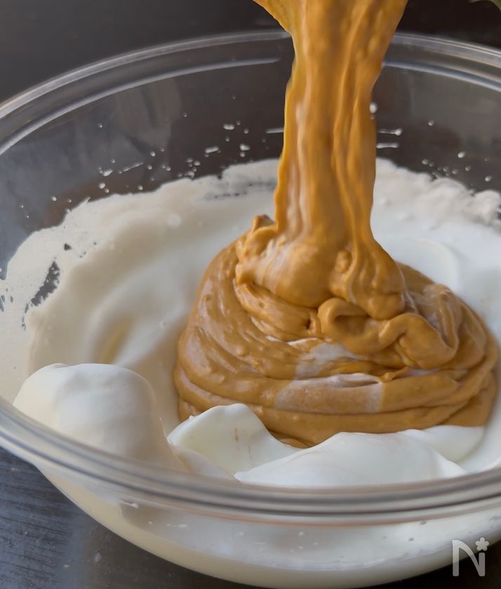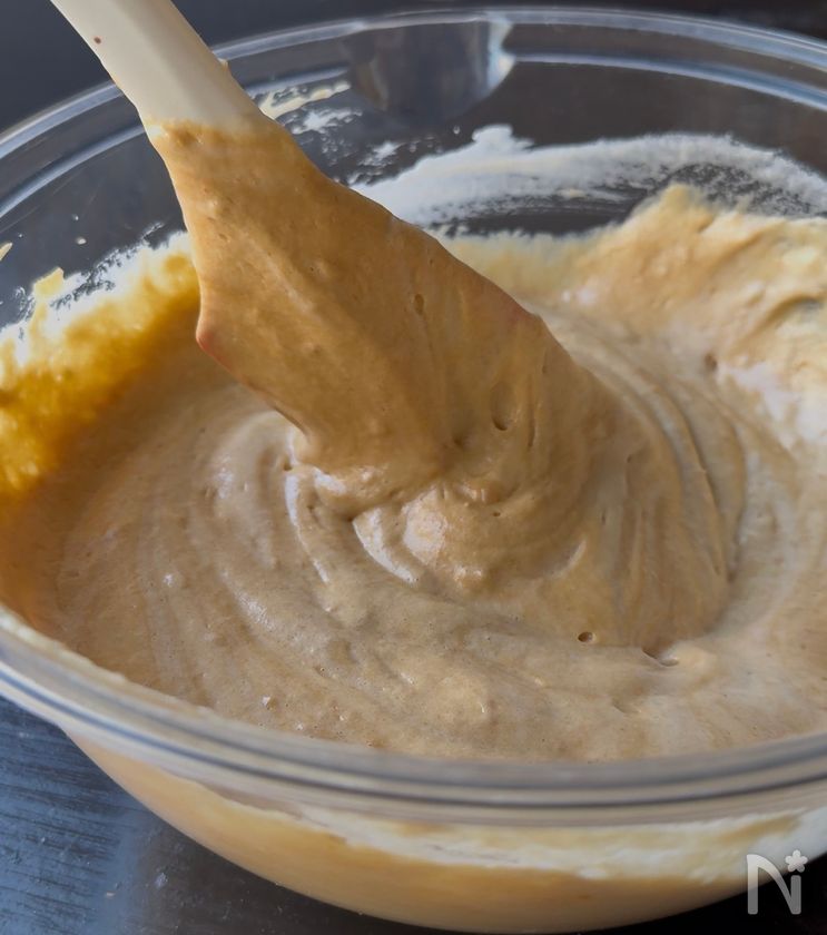 (6) 4に3の3分の1を加え、しっかりと混ぜる。