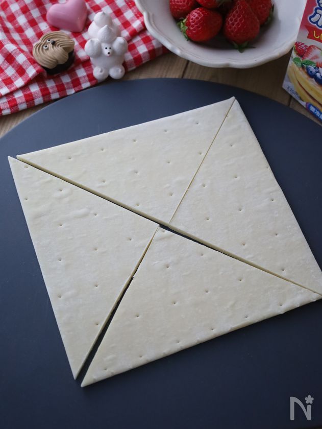 (下準備) パイシートは冷凍庫から出し10分ほど常温に戻しておく。