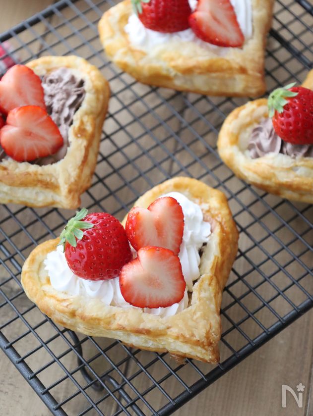 パイ生地にチョコレートを塗ることで、パイが生クリームの水分を吸わず、時間が経ってもパリパリのままです。