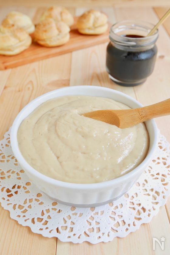 一度取り出し、泡立て器でよく混ぜ、さらに1分加熱、泡立て器でよく混ぜる。「500wのレンジで1分加熱して泡立て器で混ぜる」工程をとろみがつくまであと2〜3回ほど繰り返す。