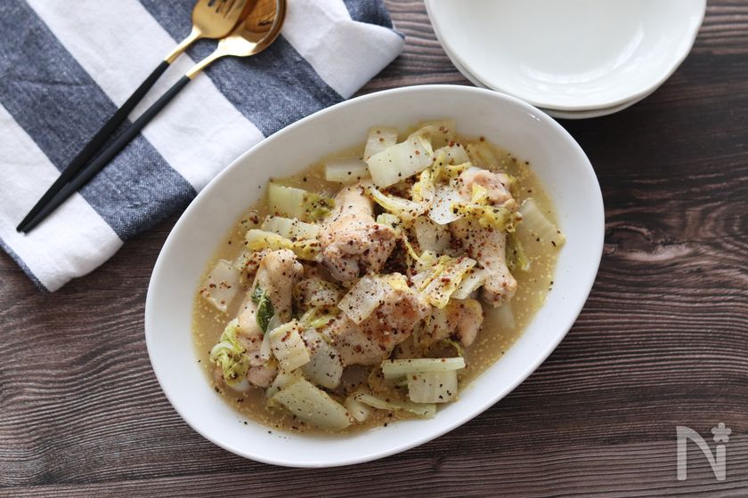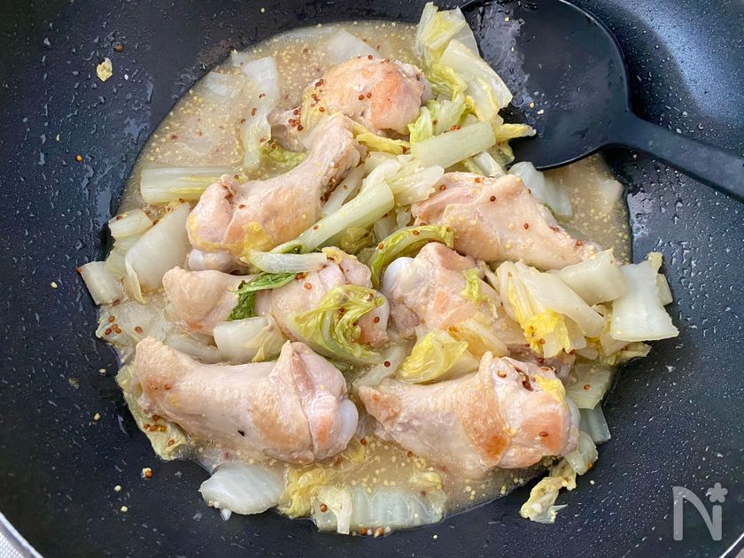 【白菜と手羽元の粒マスタード煮込み】時短でできて美味しい~♪