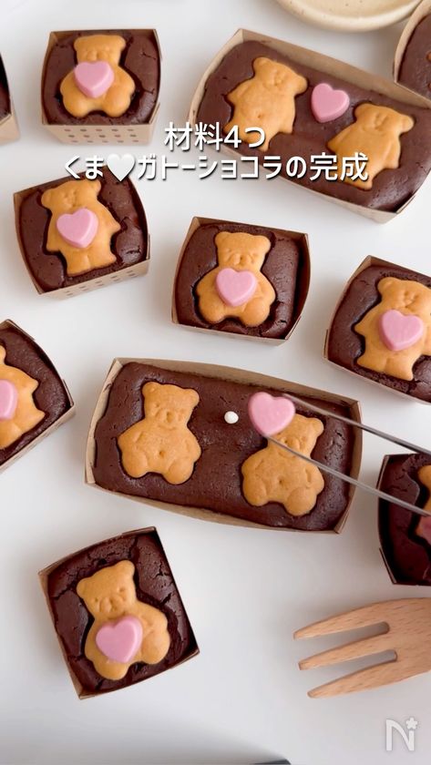 (4) 予熱した170℃のオーブンで20分焼く。お好みでハートチョコを飾る。