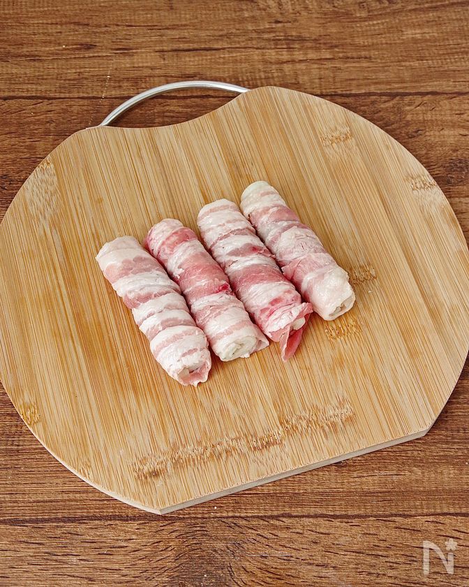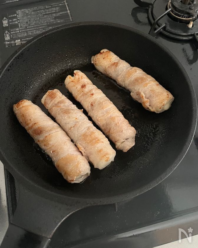 ・【工程③】豚肉を巻いたあとに食べやすい大きさ2〜3等分に切っても良いです◎