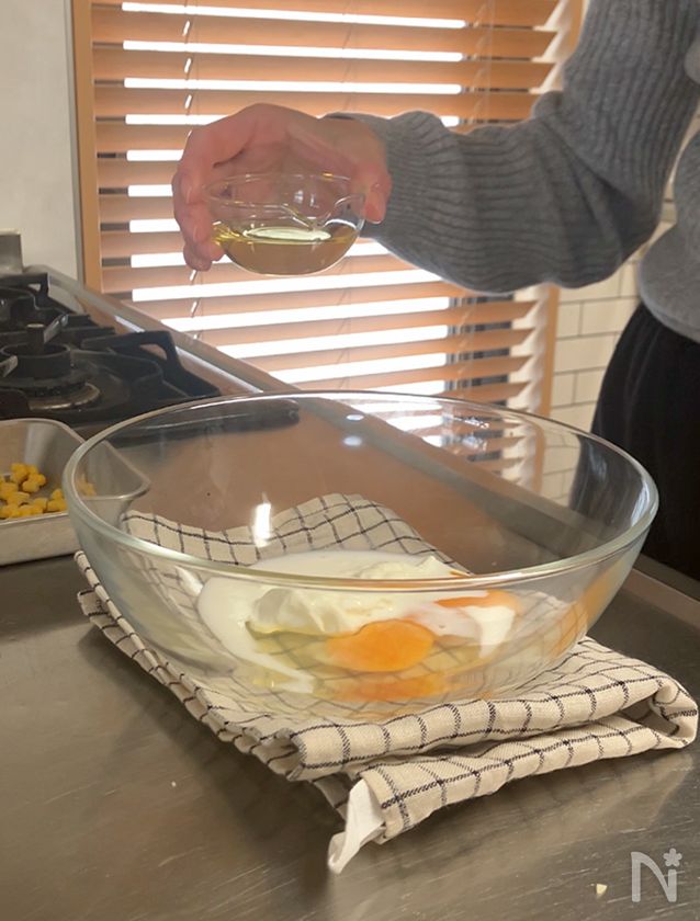 ・コーンはしっかり水気を切ると生地がベタつきません。