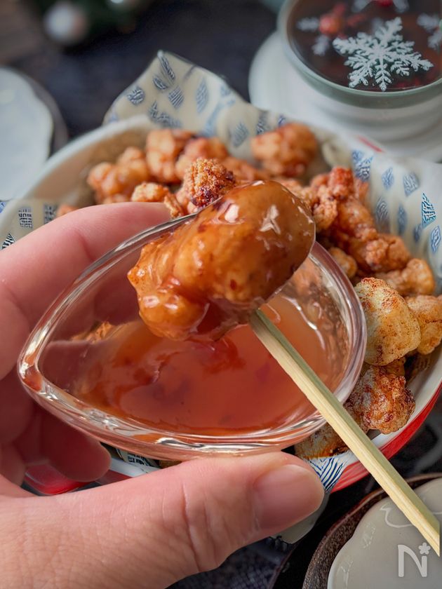 (6) そのままでも良いが、スイートチリソースをつけても美味しい。