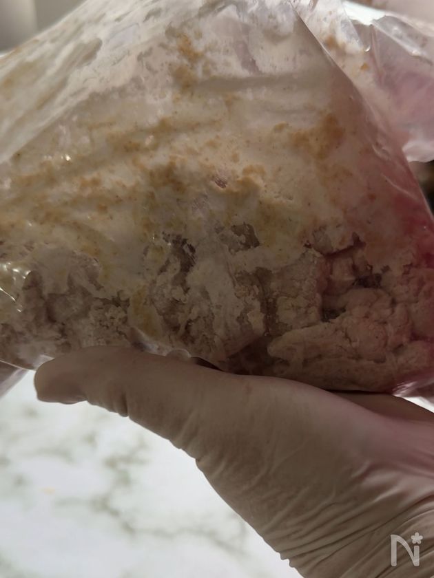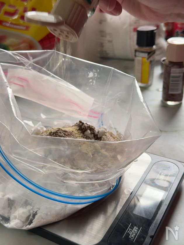 (3) 別のビニル袋に【B】をすべて入れて振り、粉を良く混ぜておく。