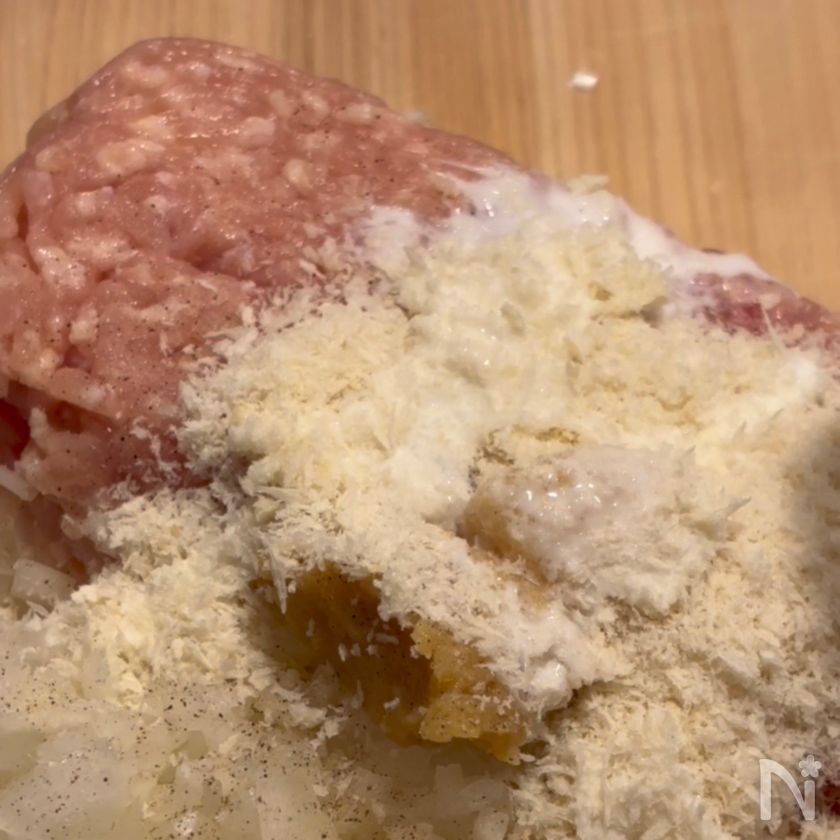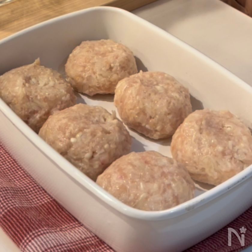 (1) ボウルに鶏ひき肉・えのき・玉ねぎ・【A】を入れしっかりとこねる。