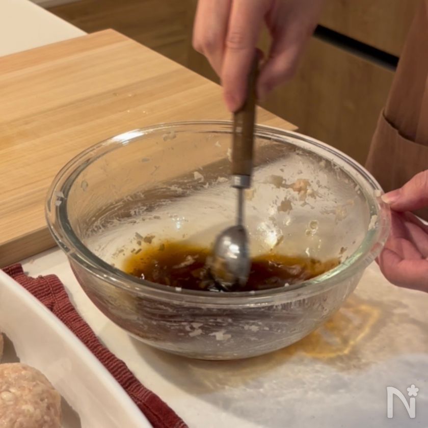 (3) タネをこねたあとのボウルに【B】を入れタレを作る。