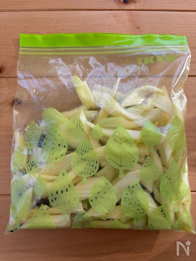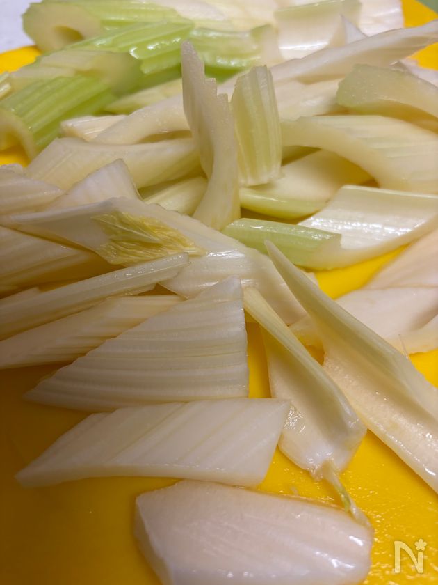 (3) フリーザーバッグなどにセロリと【A】を入れて良く揉み込み冷蔵庫で1時間以上置く。