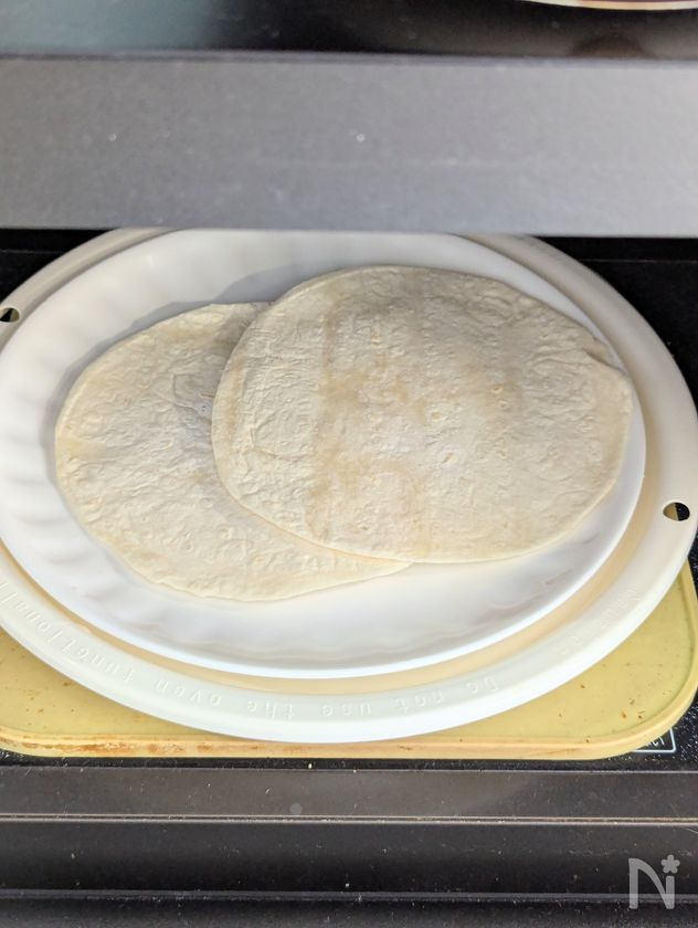 市販のトルティーヤは加熱しなくても食べられますが、軽く温めたほうがバサついた食感がなくなります。
