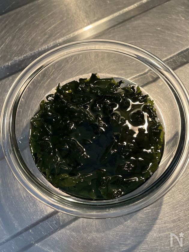 (1) 乾燥わかめは水に浸して戻し、よく絞る。