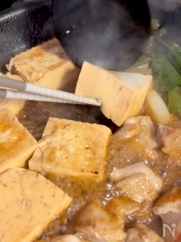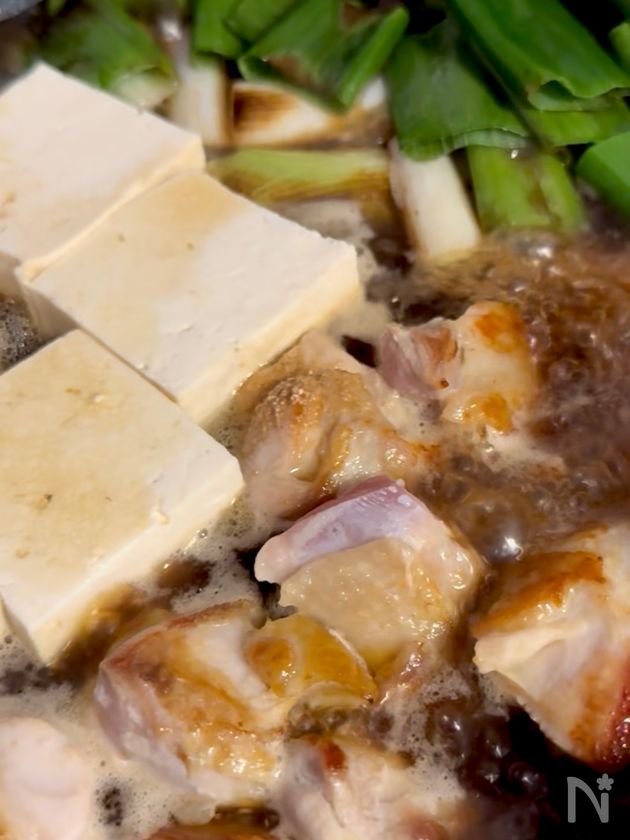 材料3つ!10分で味しみ♪【焼きねぎ鶏豆腐】